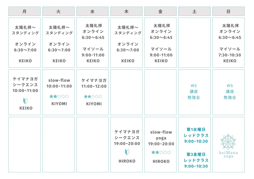 ・この曜日はスタジオクラスがあるため、オンラインでは太陽礼拝A×5回、B×3回のみをガイドします。